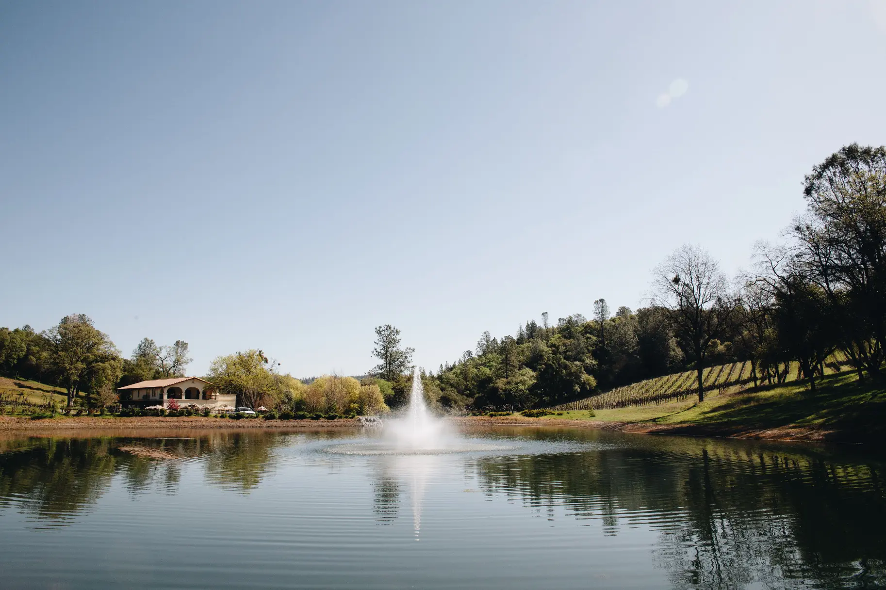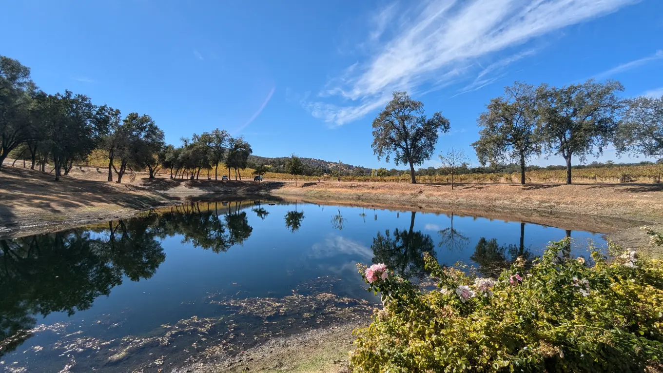 The pond and surrounding vineyard rows provide some of the most picturesque views on the property. Couples often use these areas for portraits, first looks, and quiet moments throughout the day.